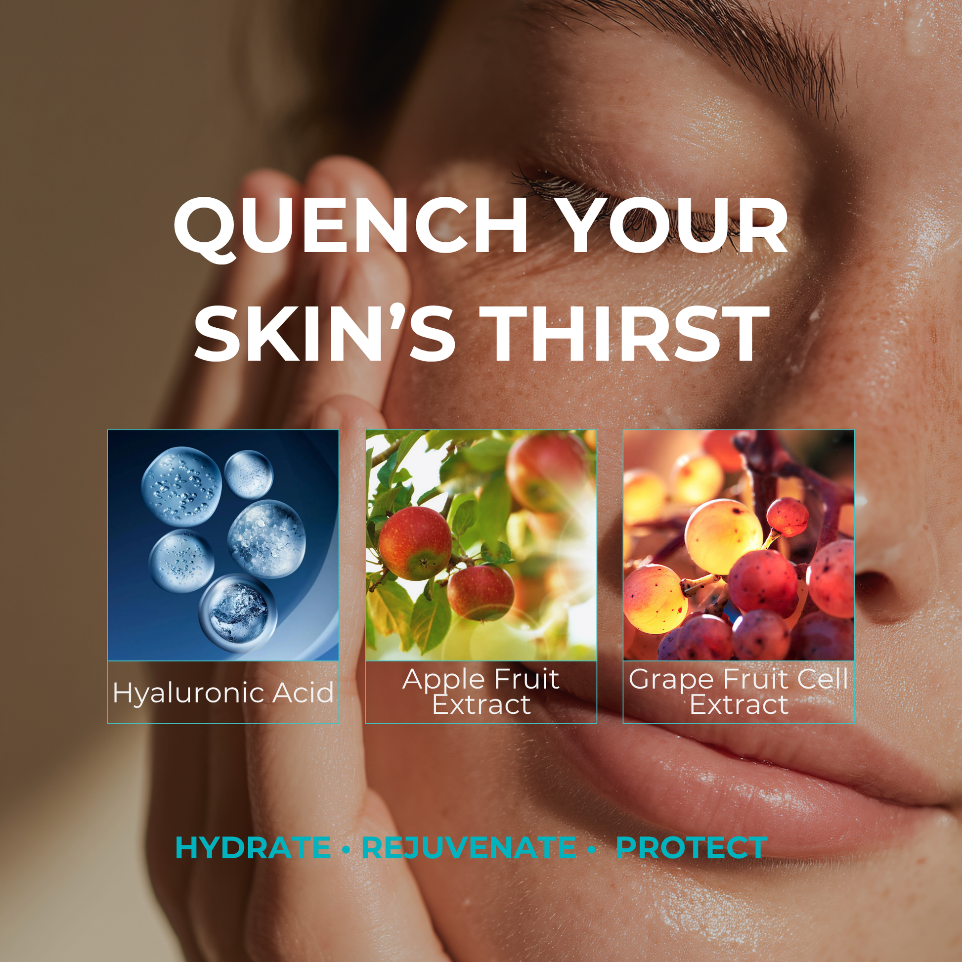 Water/Aqua/Eau, Dimethi- cone, Bis-PEG-8 Dimethicone, HDI/ Trimethylol Hexyllactone Crosspolymer, Polysilicone-11, Glycerin, Pyrus Malus (Apple) Fruit Extract, Vitis Vinifera (Grape) Fruit Cell Extract, Plankton Extract, Tocopheryl Acetate (Vitamin E), Sodium Hyaluro- nate (Hyaluronic Acid), Hydrolyzed Hyaluronic Acid, Hydrolyzed Sodium Hyaluronate (Hyaluronic Acid), Sodium Hyaluronate (Hyaluronic Acid) Crosspolymer, Lecithin, Ethylhexyl- glycerin, Caprylyl Glycol, Serine, Isohexadecane, Glyceryl Linoleate, Sucrose Palmitate, Trehalose, Urea, Polysorbate 80, Polysorbate 20, Isomalt, Algin, Disodium Phosphate, Glyceryl Polyacrylate, Ammonium Polyacryloyldimethyl Taurate, 1,2 Hexanediol, Disodium EDTA, Acrylates/C10-30 Alkyl Acrylate Crosspolymer, Silica, Sodium Hydroxide, Potassium Phosphate, Pentylene Glycol, Pullulan, Polymethylsilsesquioxane, Sodium Benzoate, Phenoxyethanol